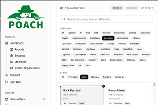 Hey, this is news.poach.vc, where we help you discover pre-seed / seed deal flow by tracking the people the top 350 VCs are interacting with online.